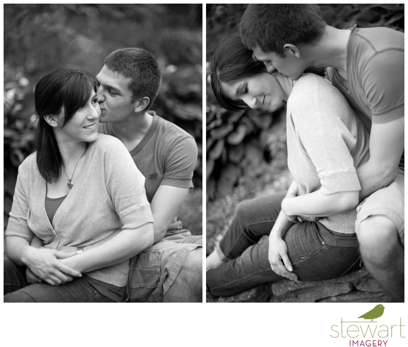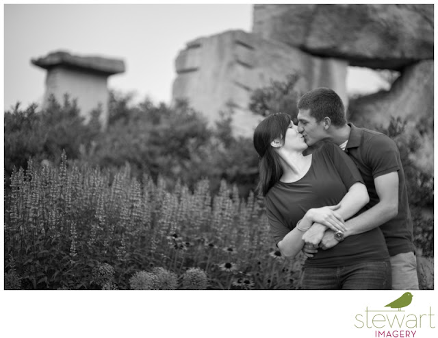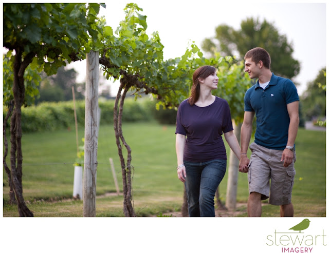 Mike loves the way her face lights up when she smiles.  Claire loves his blue eyes, and the way he makes her laugh.  She bakes delicious cupcakes that he loves to eat.  All of this was captured when we met up on a steamy summer evening for their engagement session in Bloomington.