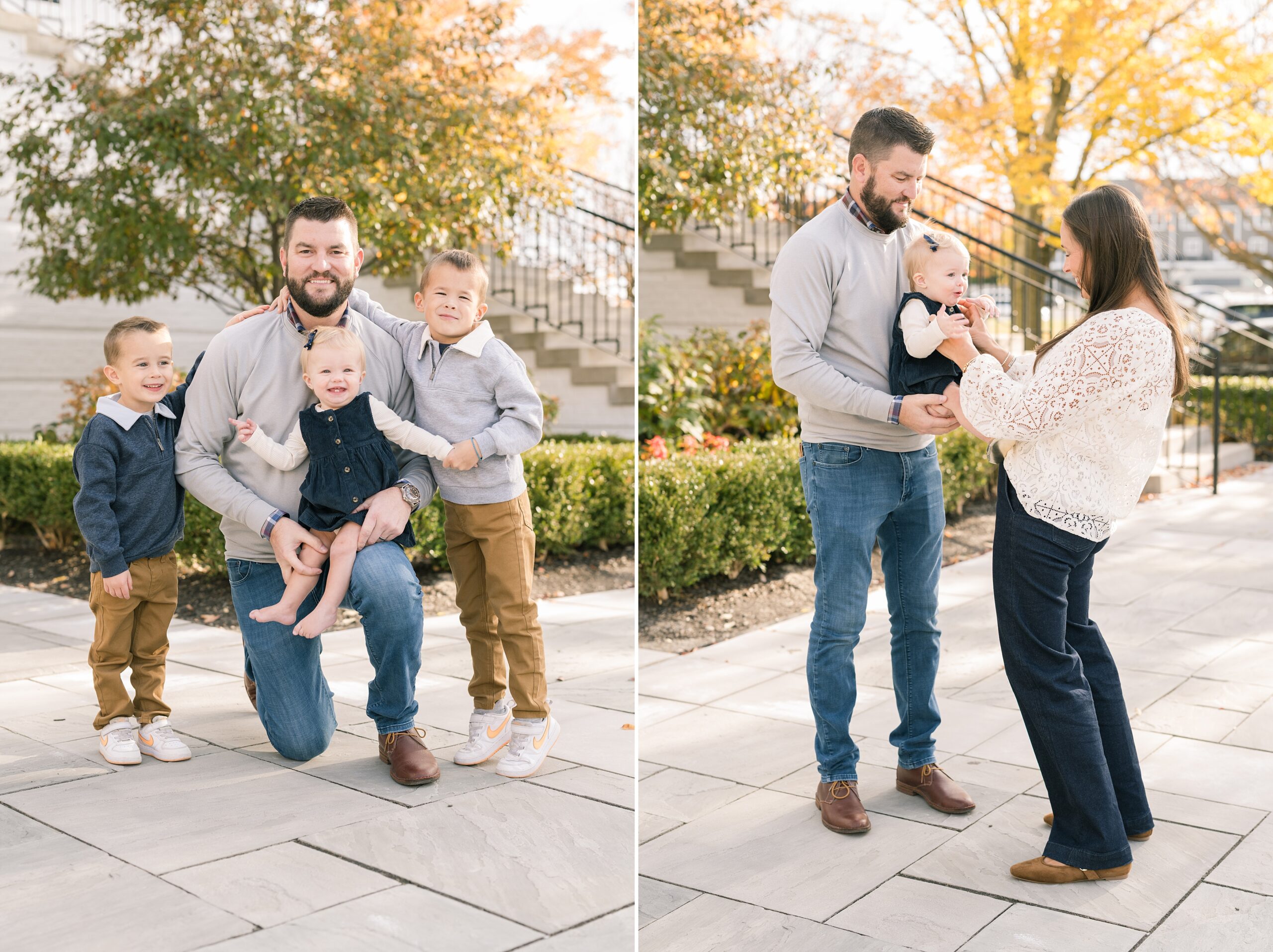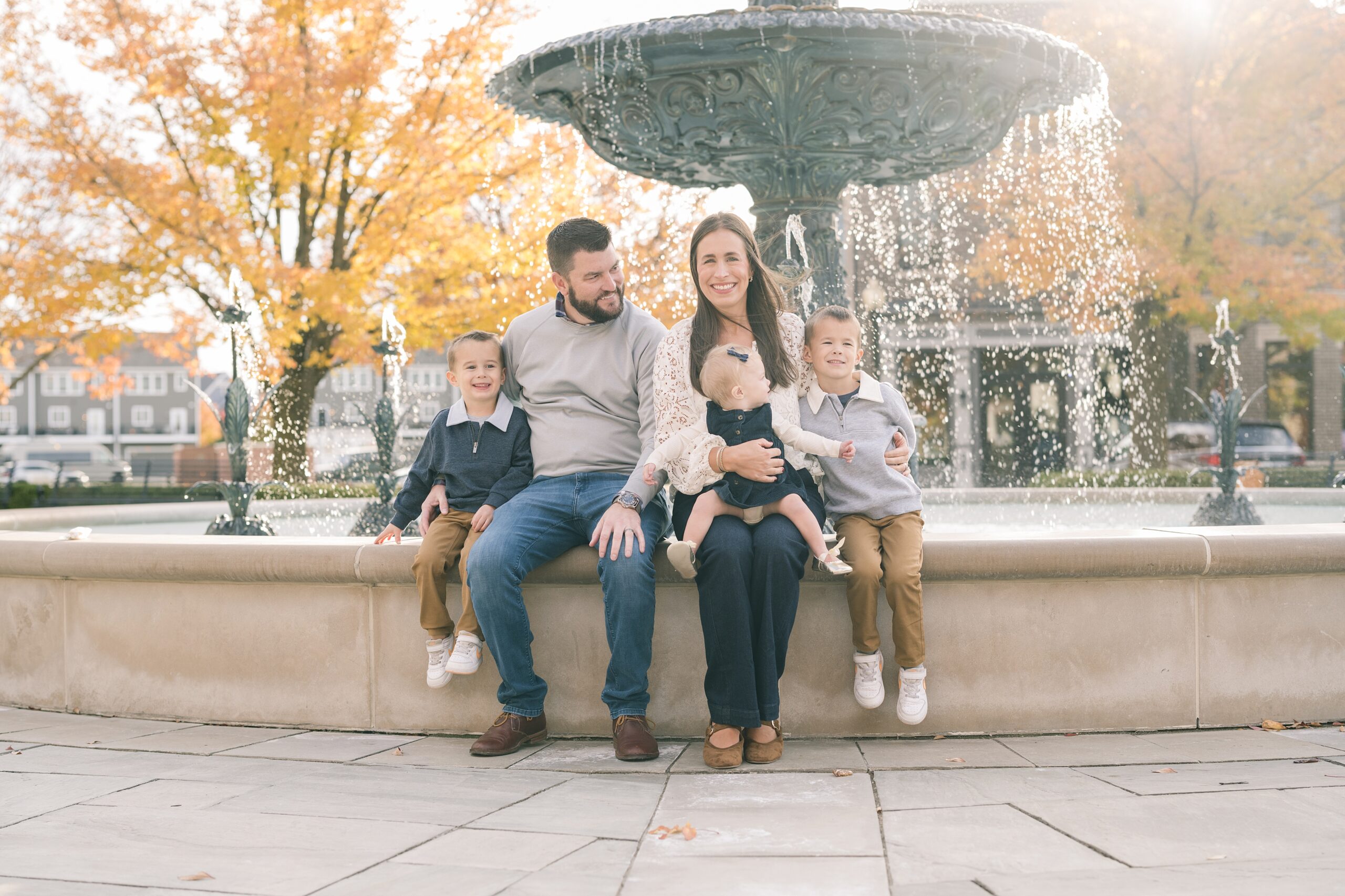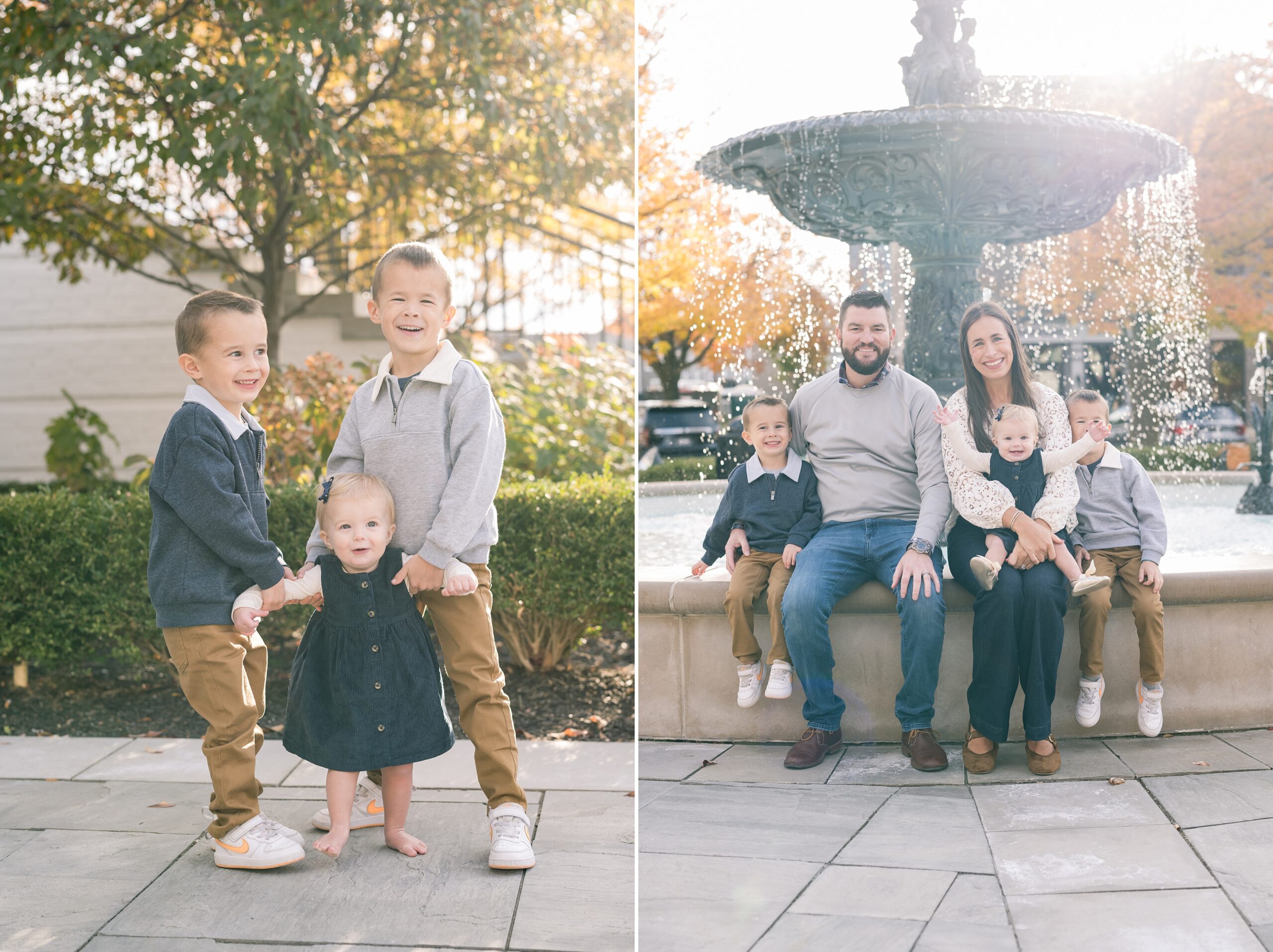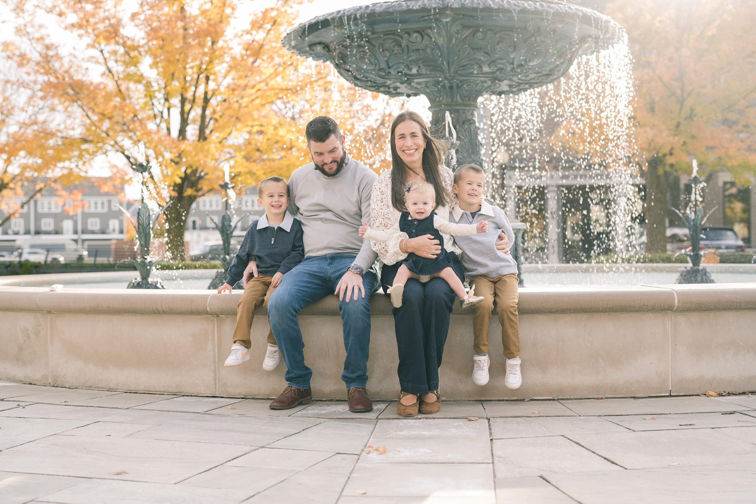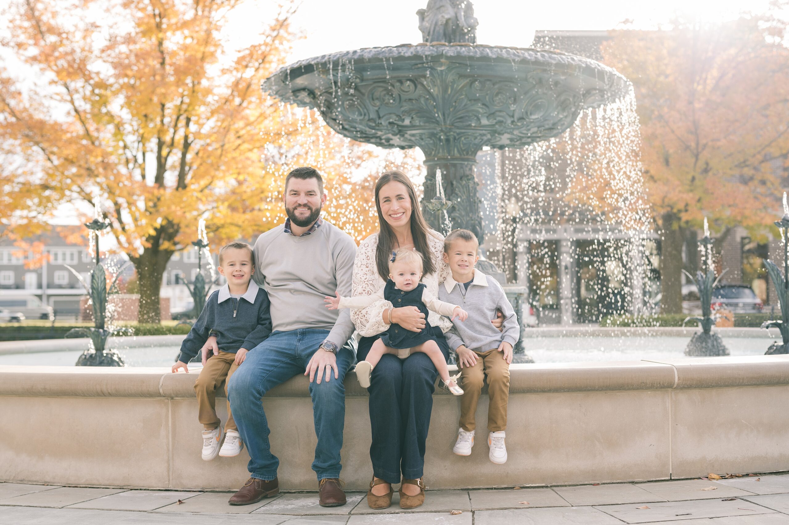I am so excited to share some favorites from this charming fall portrait session! First, let me say how much of an honor it is when my clients refer me to their friends and family! I am beyond lucky to meet and to work with such fun and down to earth people, it is the best! Second, we had great weather for their fall session! We had scheduled their session for a few days later, however, the forecast called for less than ideal conditions, and, fortunately, Katie and her family were available. And I’m so grateful because it could not have been better! We had fall color, we had sunshine, and we had the kind of temperature where you could be comfortable in light layers or a sweater, which is so great for little ones! Enough about the weather, let’s get to the good stuff! Meet Katie and Kevin and their adorable kiddos, Owen (6), Emmett (4), and Ceci (11 months)! As the late afternoon sun illuminated our time, I simply enjoyed their sweet interactions as a family of 5. Ceci is blessed with two handsome big brothers who are completely smitten with her! And just wait until you see her tiny little golden slippers! She is so expressive, and I couldn’t adore her or her whole family more! It was so refreshing to see their sweet sibling dynamic, and they know how to make her laugh and smile! This dream session had the perfect balance—sweet and silly, calm and spirit. With their vivacious personalities and tender moments, we captured so much in such a short time, and I’m excited to share a little peek into that evening with you!