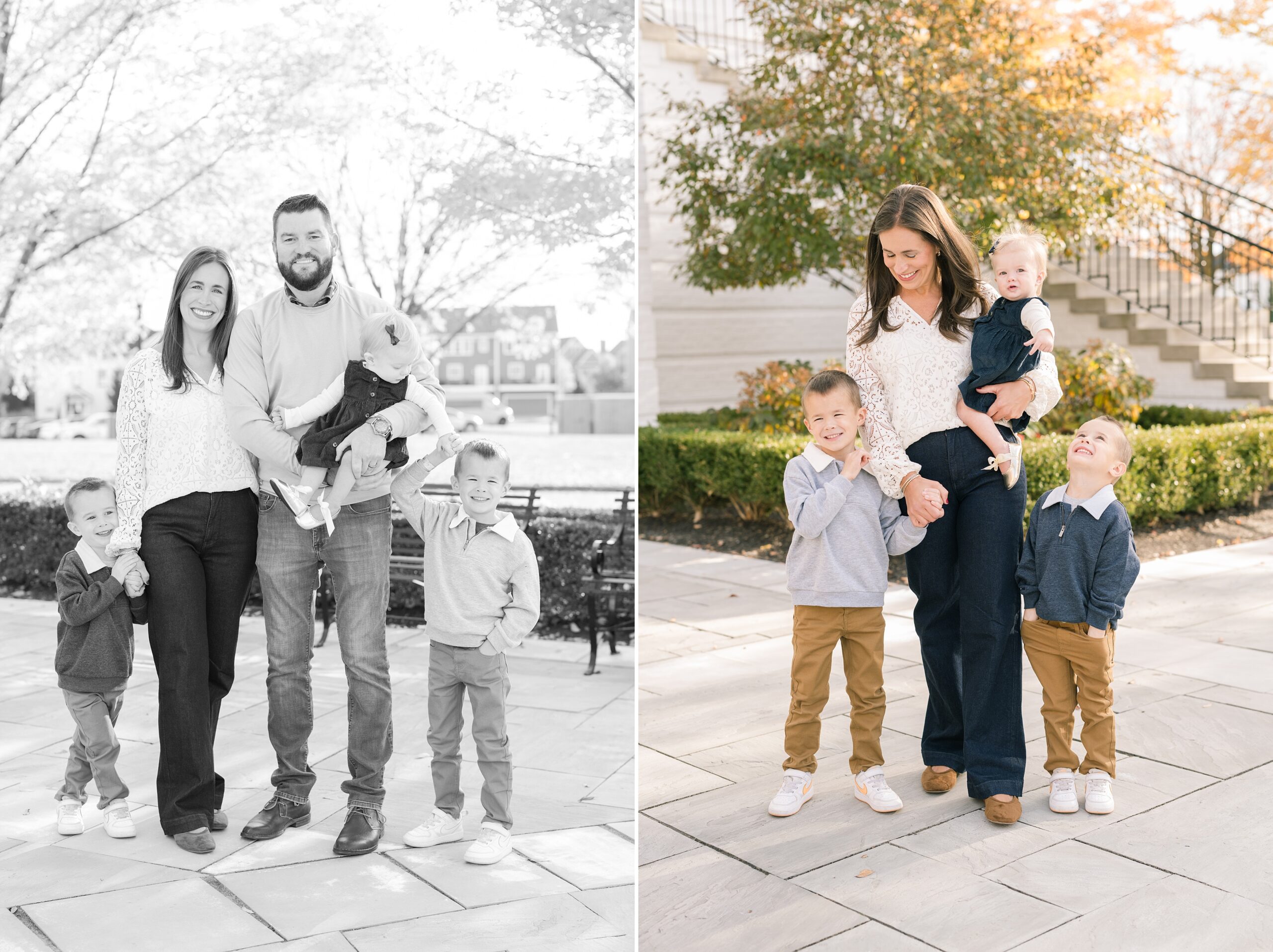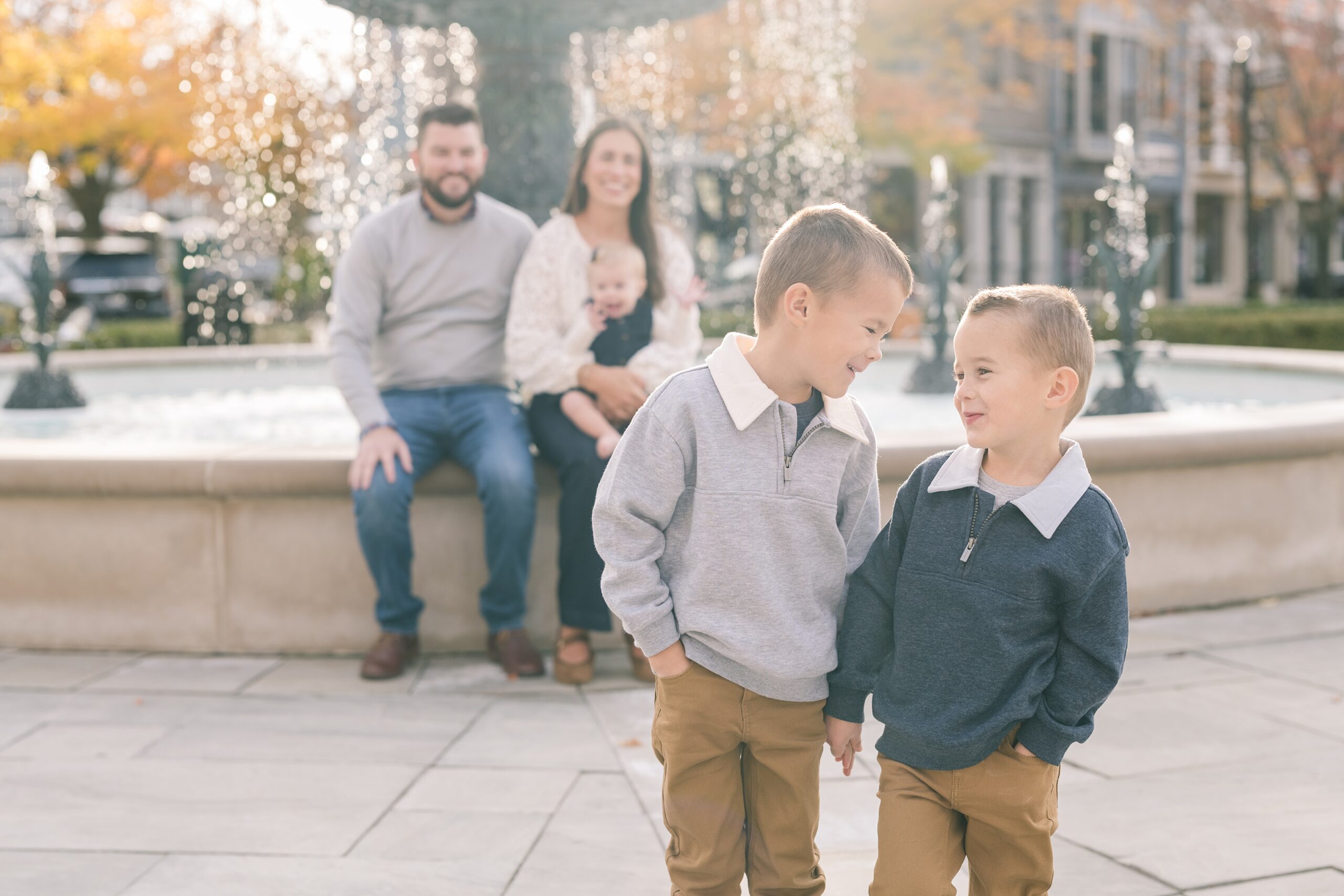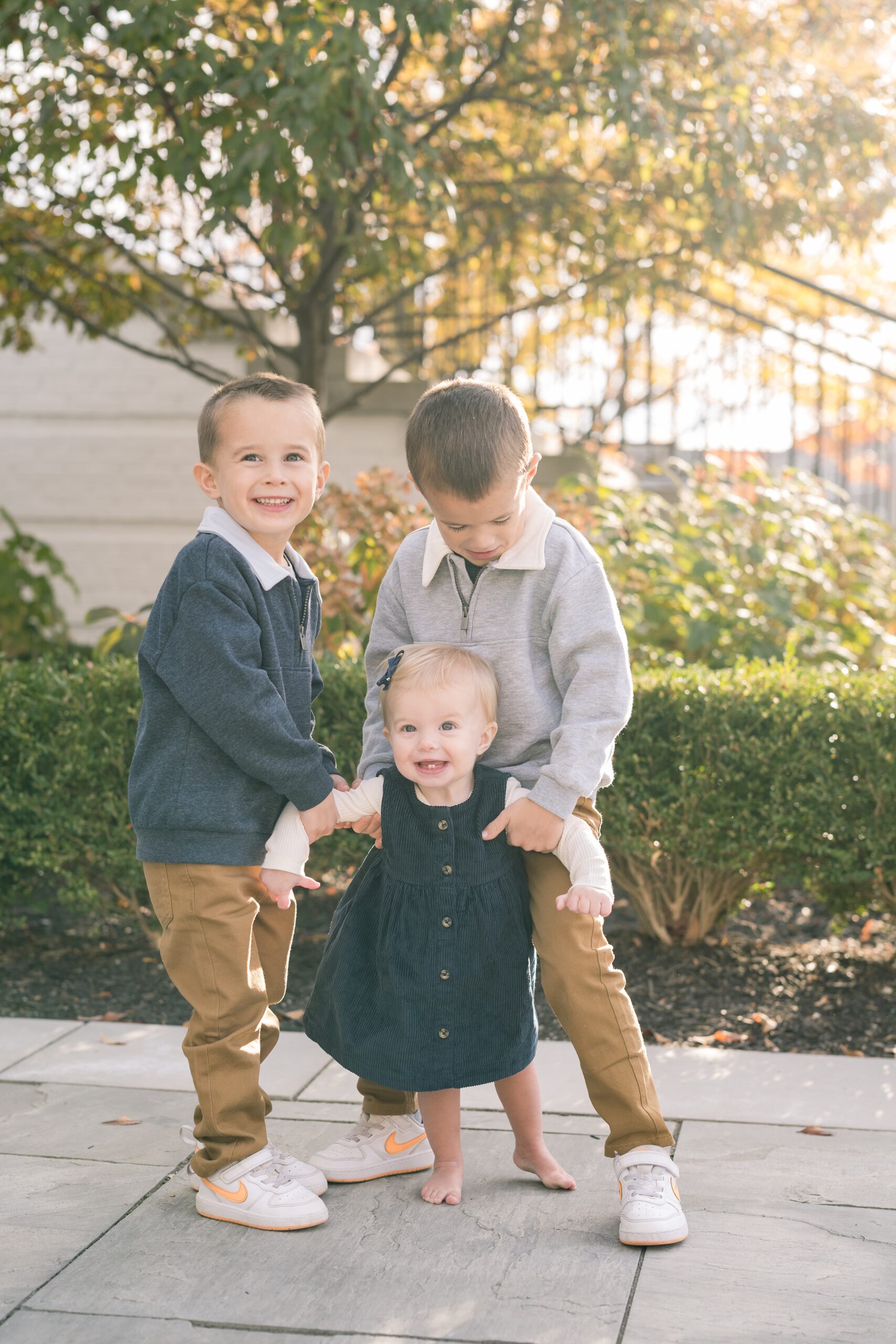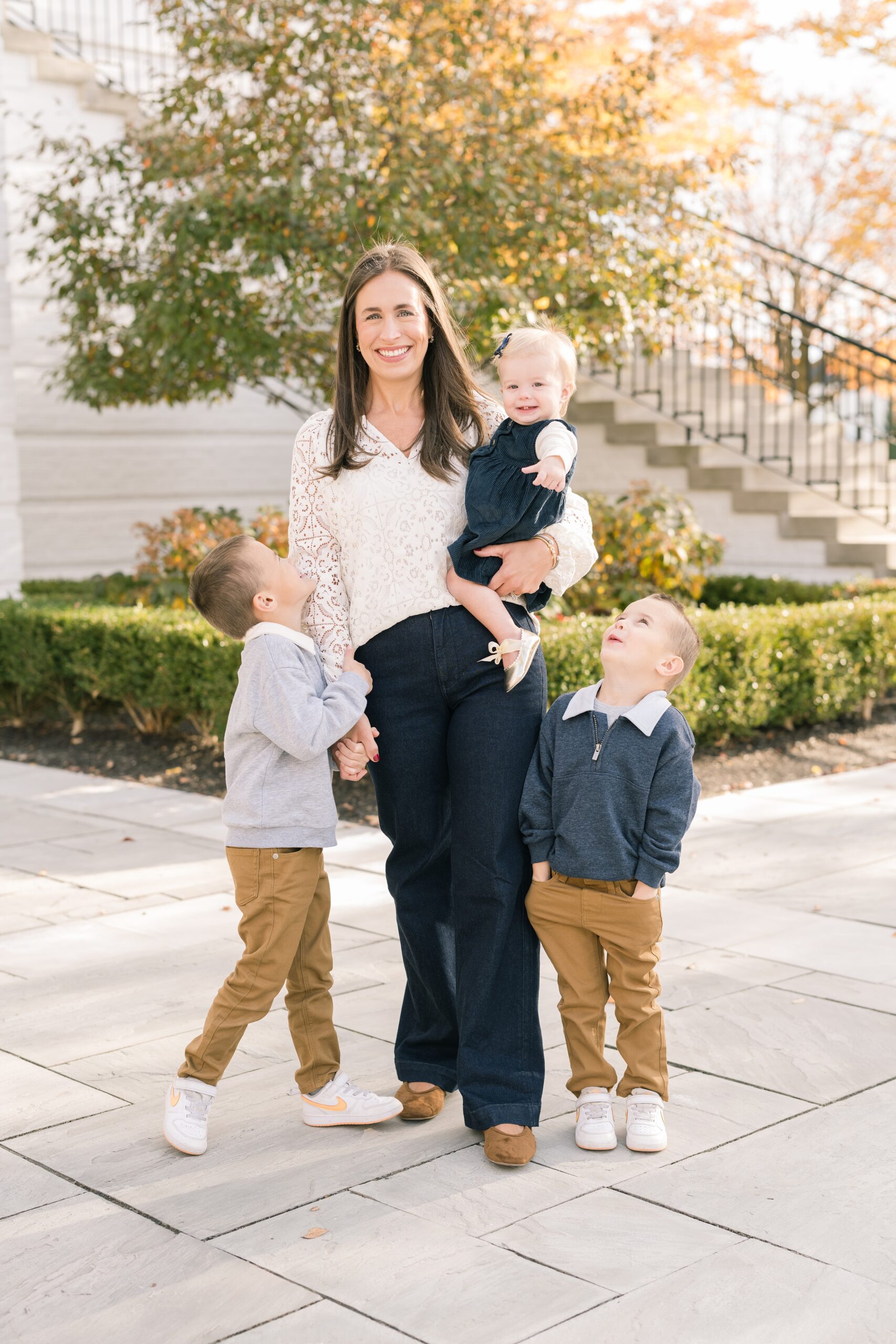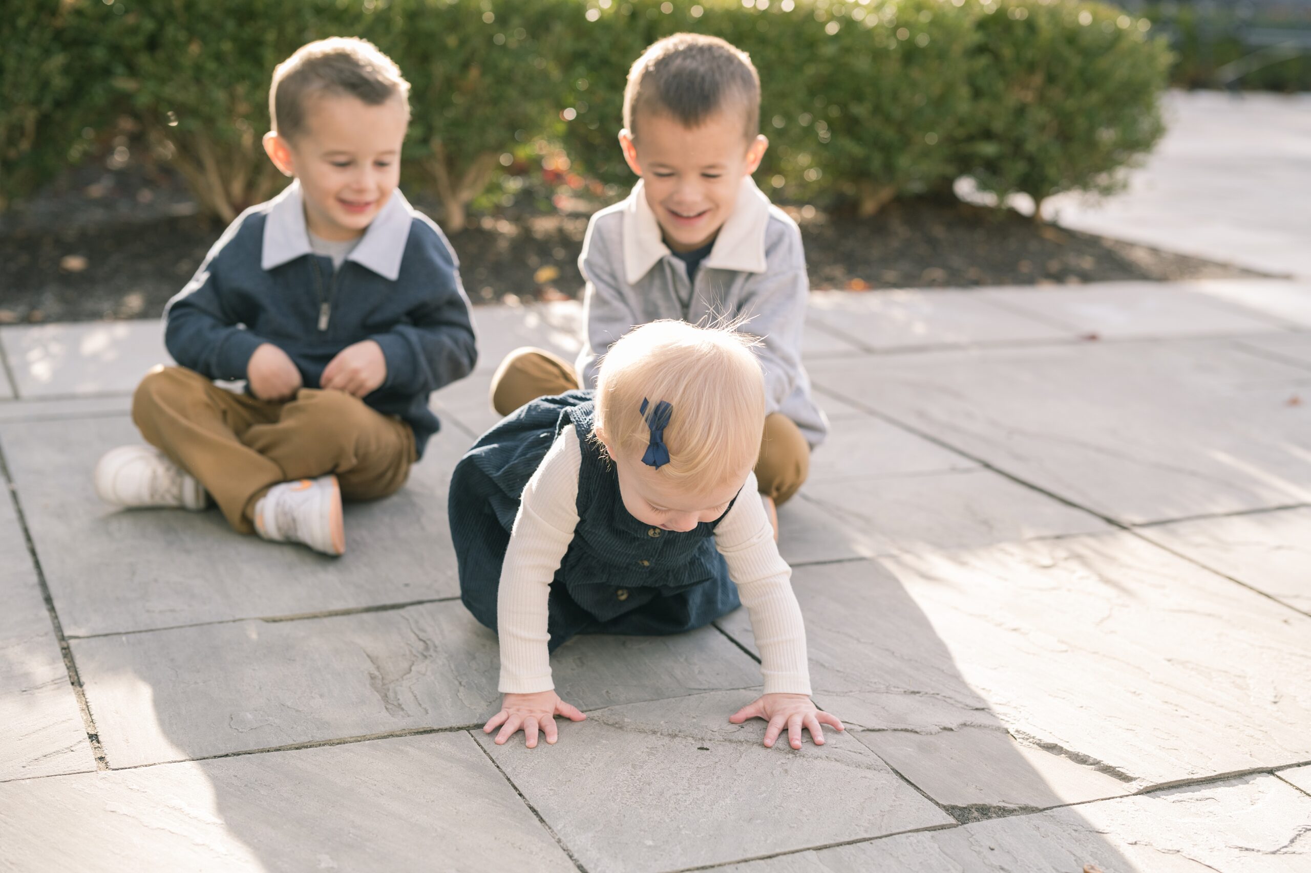 I am so excited to share some favorites from this charming fall portrait session! First, let me say how much of an honor it is when my clients refer me to their friends and family! I am beyond lucky to meet and to work with such fun and down to earth people, it is the best! Second, we had great weather for their fall session! We had scheduled their session for a few days later, however, the forecast called for less than ideal conditions, and, fortunately, Katie and her family were available. And I’m so grateful because it could not have been better! We had fall color, we had sunshine, and we had the kind of temperature where you could be comfortable in light layers or a sweater, which is so great for little ones! Enough about the weather, let’s get to the good stuff! Meet Katie and Kevin and their adorable kiddos, Owen (6), Emmett (4), and Ceci (11 months)! As the late afternoon sun illuminated our time, I simply enjoyed their sweet interactions as a family of 5. Ceci is blessed with two handsome big brothers who are completely smitten with her! And just wait until you see her tiny little golden slippers! She is so expressive, and I couldn’t adore her or her whole family more! It was so refreshing to see their sweet sibling dynamic, and they know how to make her laugh and smile! This dream session had the perfect balance—sweet and silly, calm and spirit. With their vivacious personalities and tender moments, we captured so much in such a short time, and I’m excited to share a little peek into that evening with you!