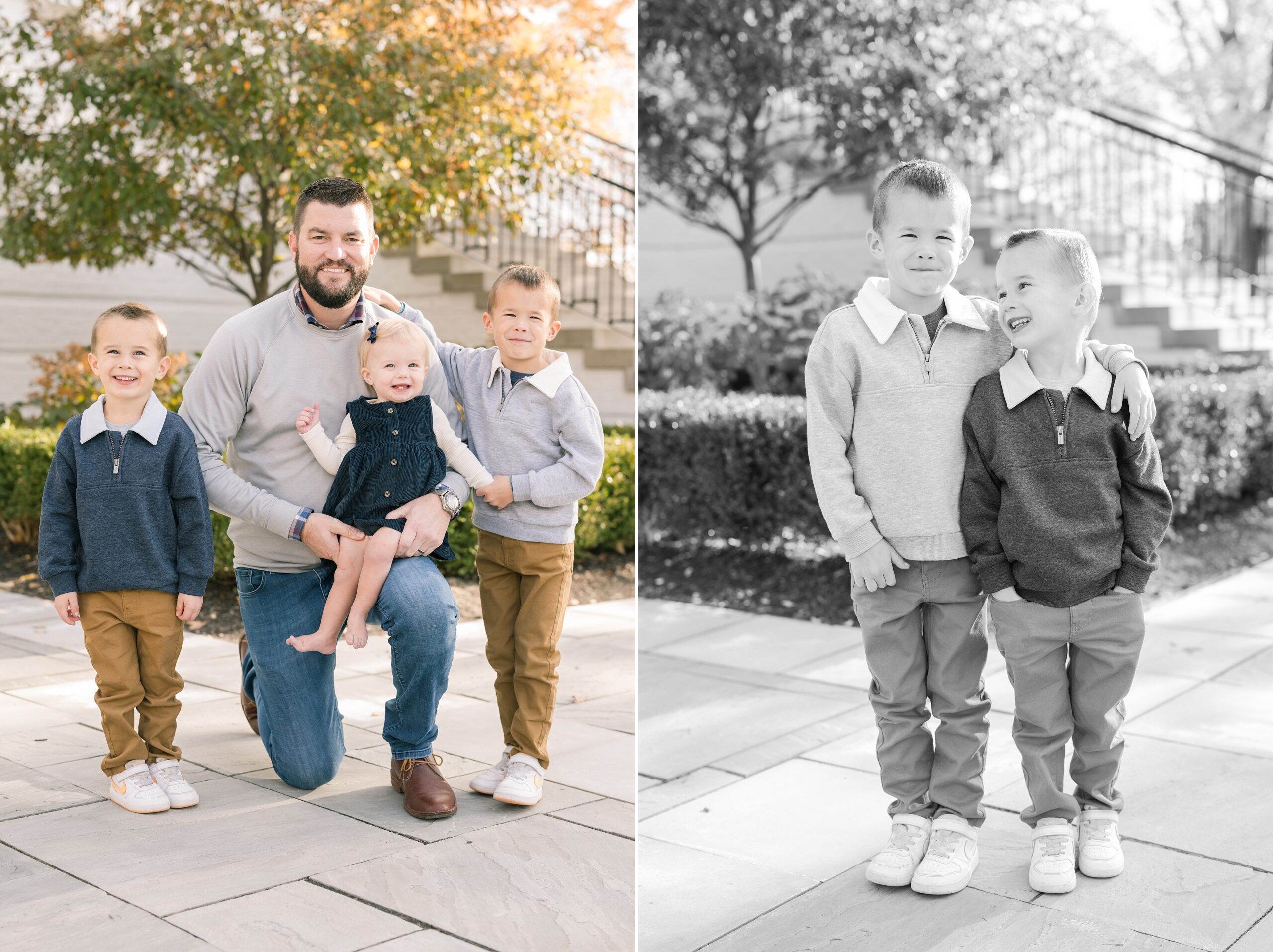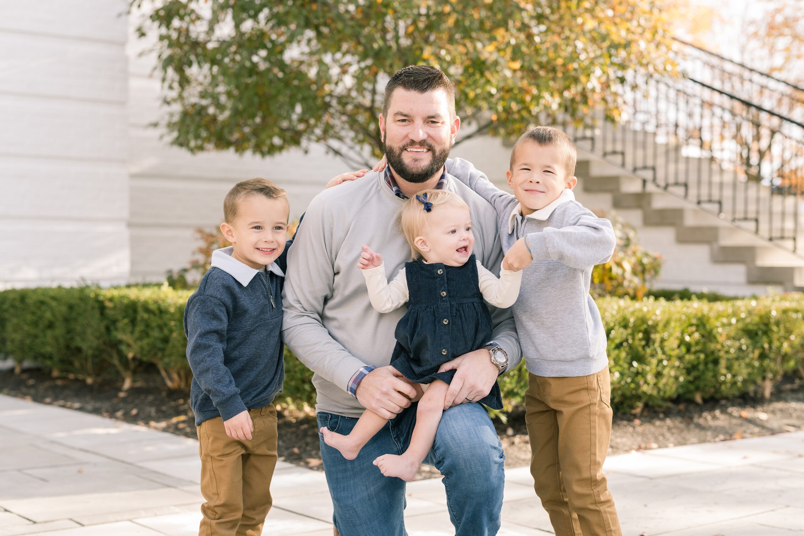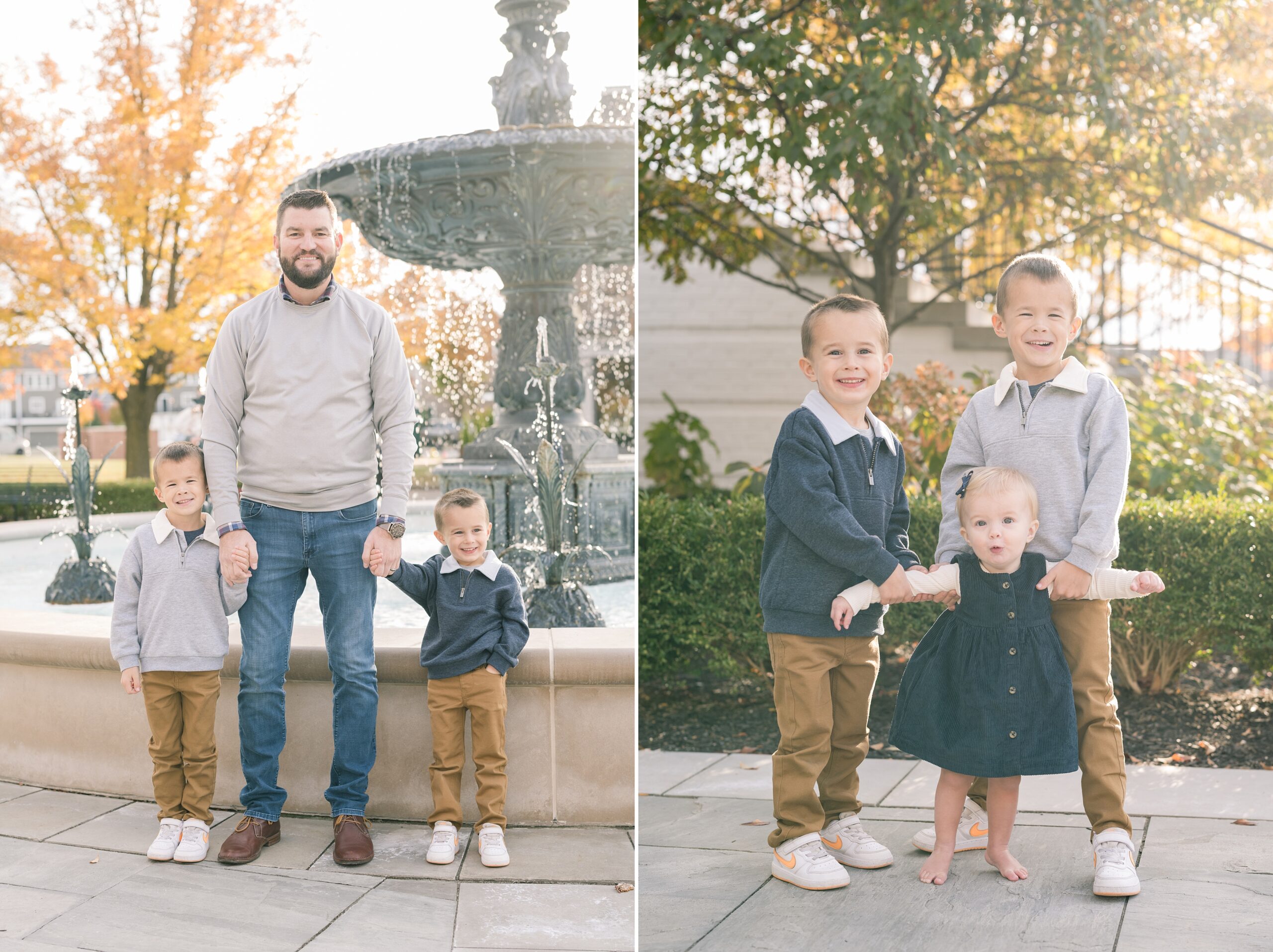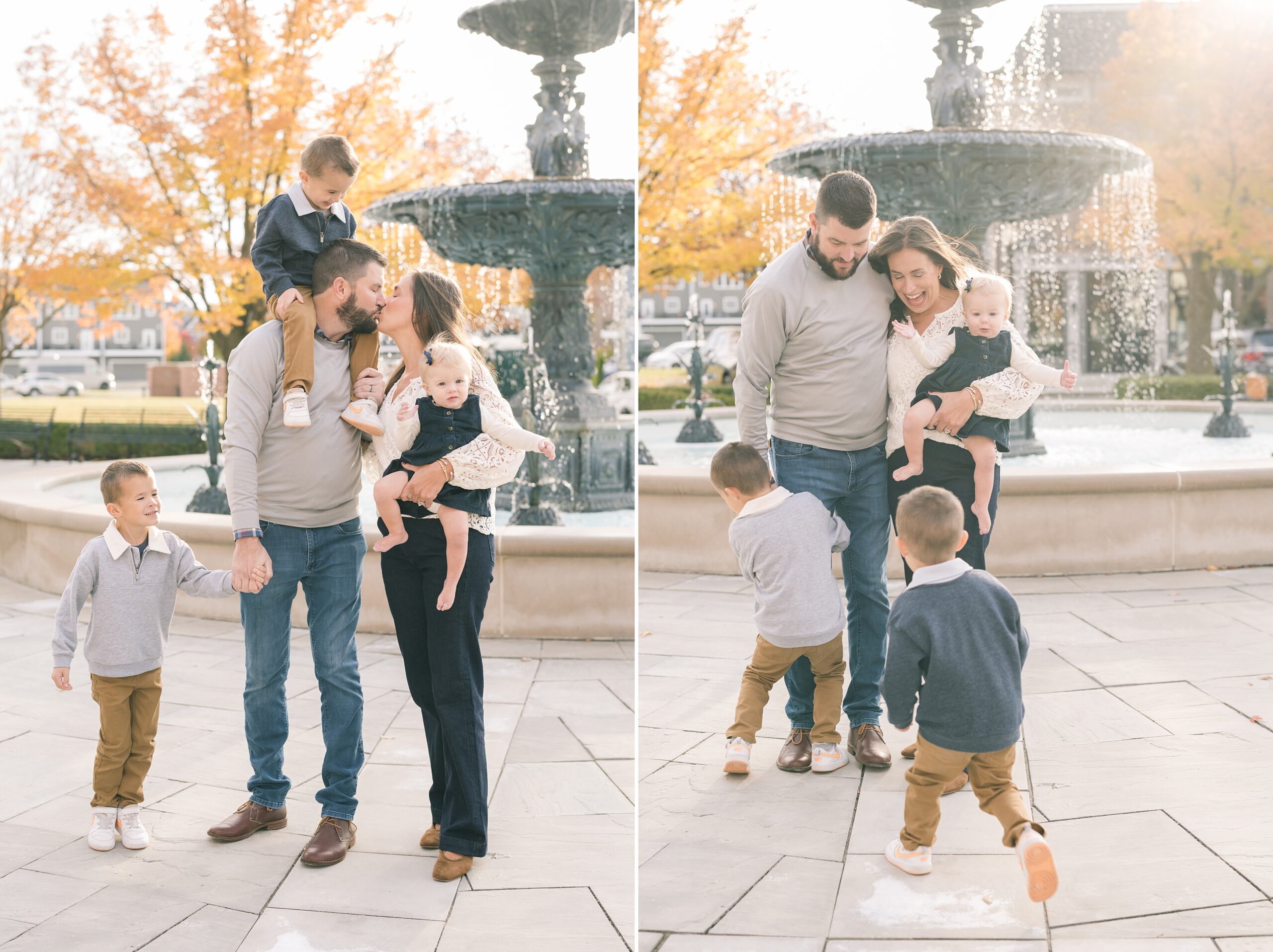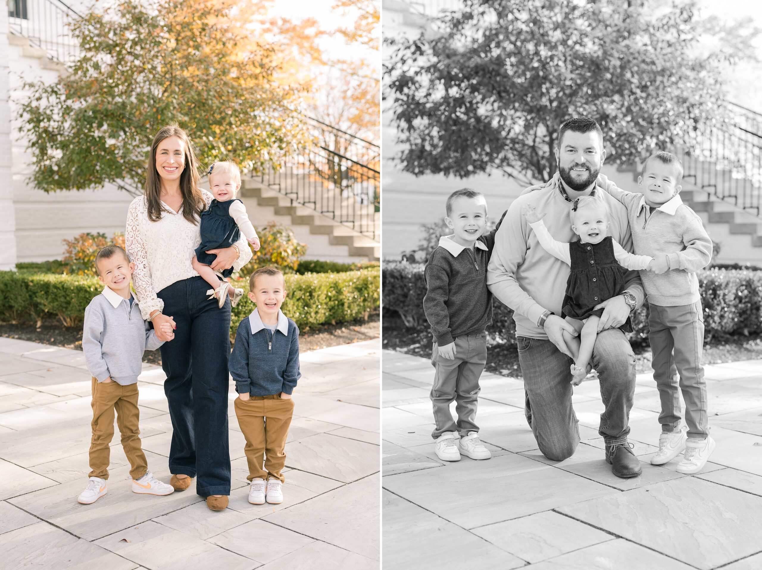 I am so excited to share some favorites from this charming fall portrait session! First, let me say how much of an honor it is when my clients refer me to their friends and family! I am beyond lucky to meet and to work with such fun and down to earth people, it is the best! Second, we had great weather for their fall session! We had scheduled their session for a few days later, however, the forecast called for less than ideal conditions, and, fortunately, Katie and her family were available. And I’m so grateful because it could not have been better! We had fall color, we had sunshine, and we had the kind of temperature where you could be comfortable in light layers or a sweater, which is so great for little ones! Enough about the weather, let’s get to the good stuff! Meet Katie and Kevin and their adorable kiddos, Owen (6), Emmett (4), and Ceci (11 months)! As the late afternoon sun illuminated our time, I simply enjoyed their sweet interactions as a family of 5. Ceci is blessed with two handsome big brothers who are completely smitten with her! And just wait until you see her tiny little golden slippers! She is so expressive, and I couldn’t adore her or her whole family more! It was so refreshing to see their sweet sibling dynamic, and they know how to make her laugh and smile! This dream session had the perfect balance—sweet and silly, calm and spirit. With their vivacious personalities and tender moments, we captured so much in such a short time, and I’m excited to share a little peek into that evening with you!