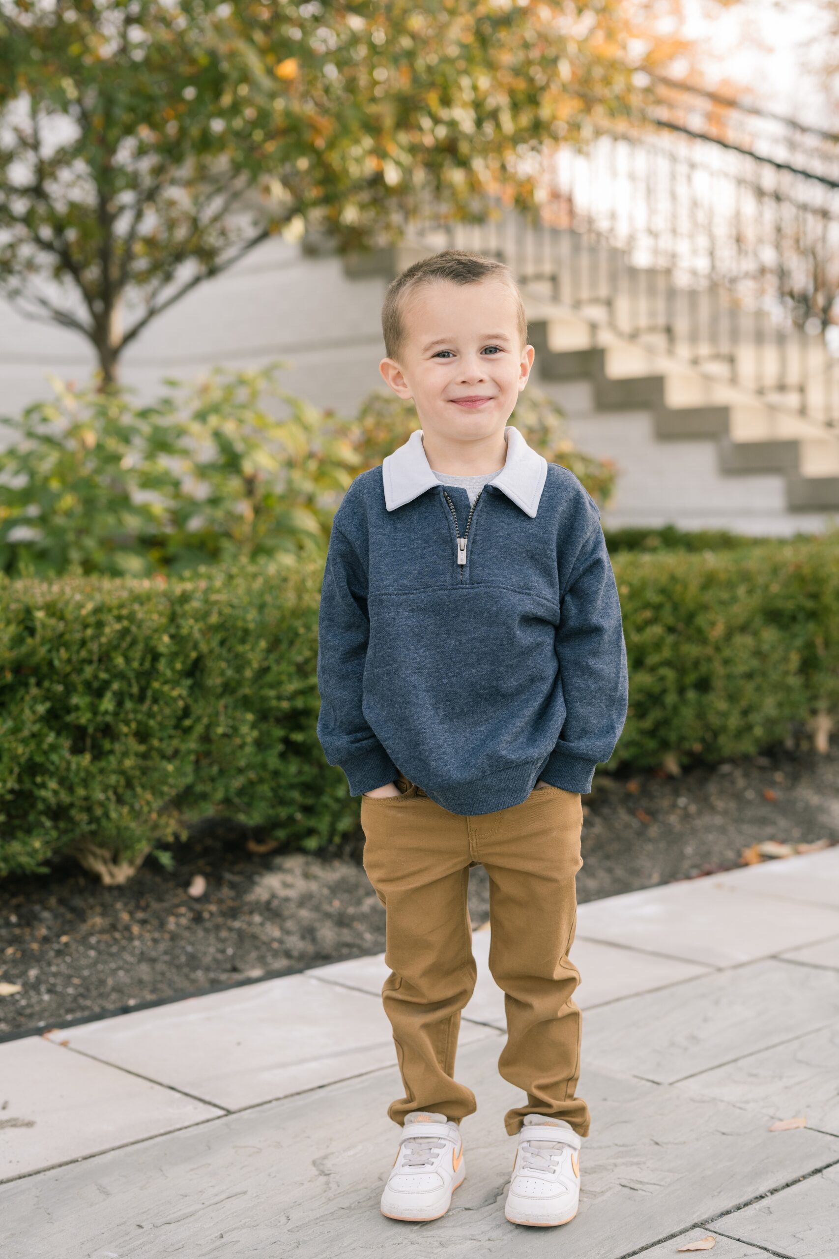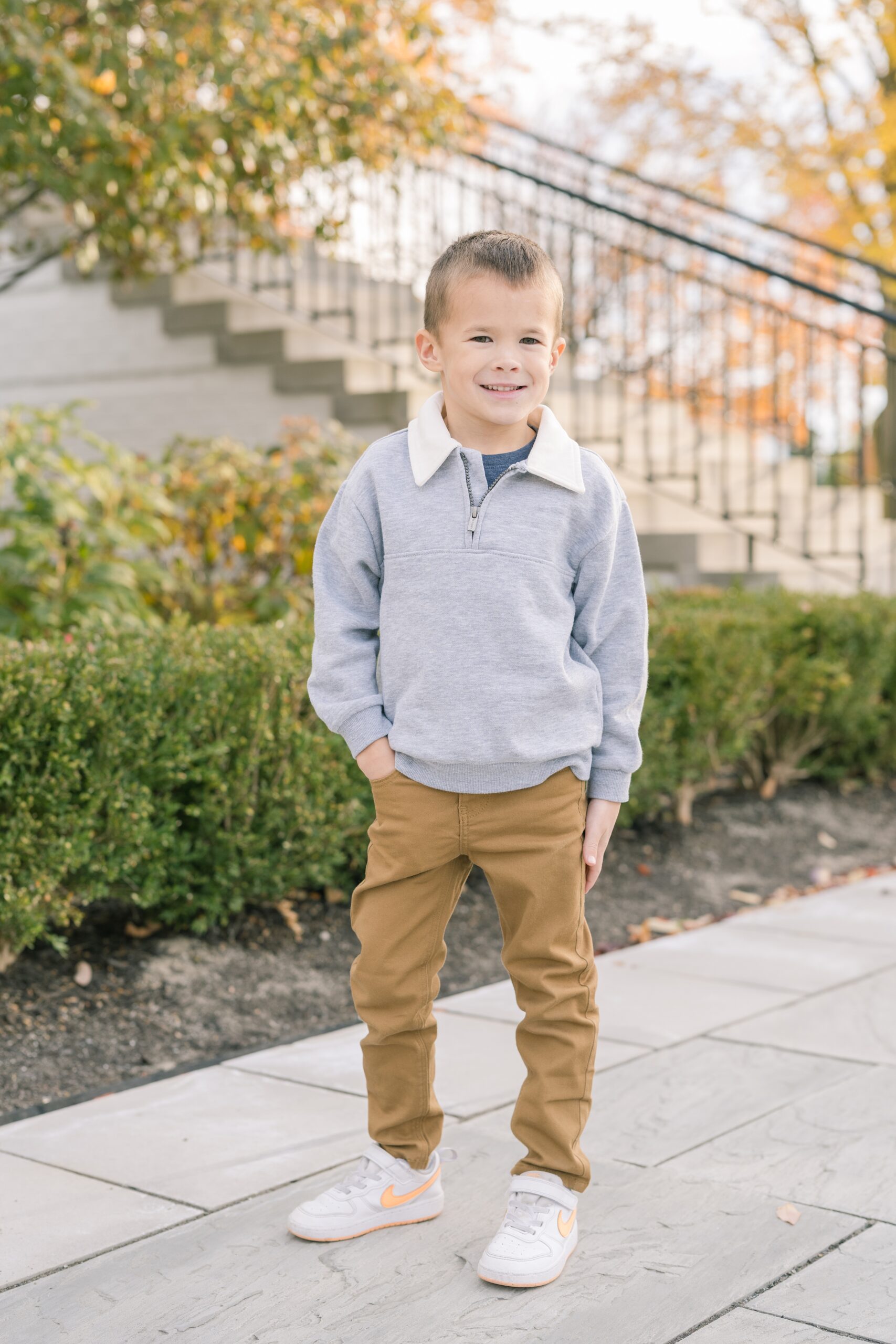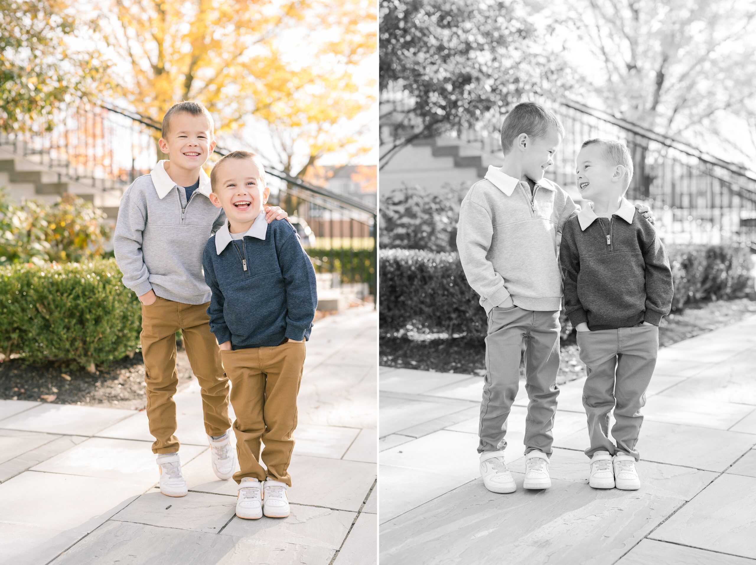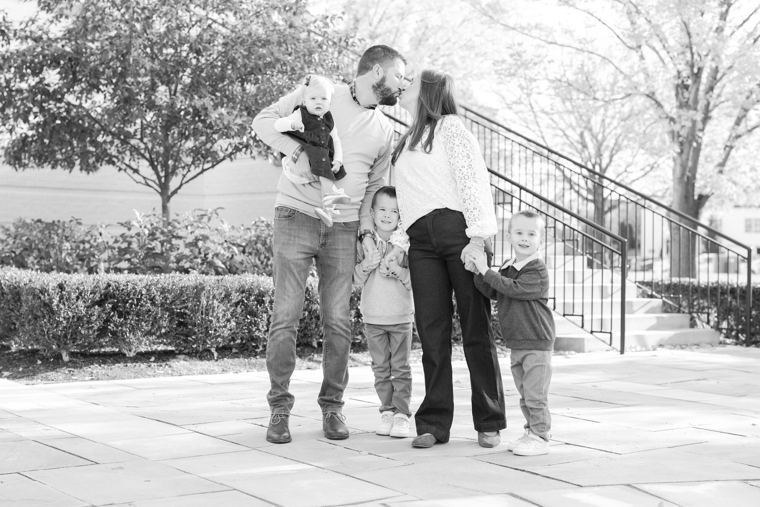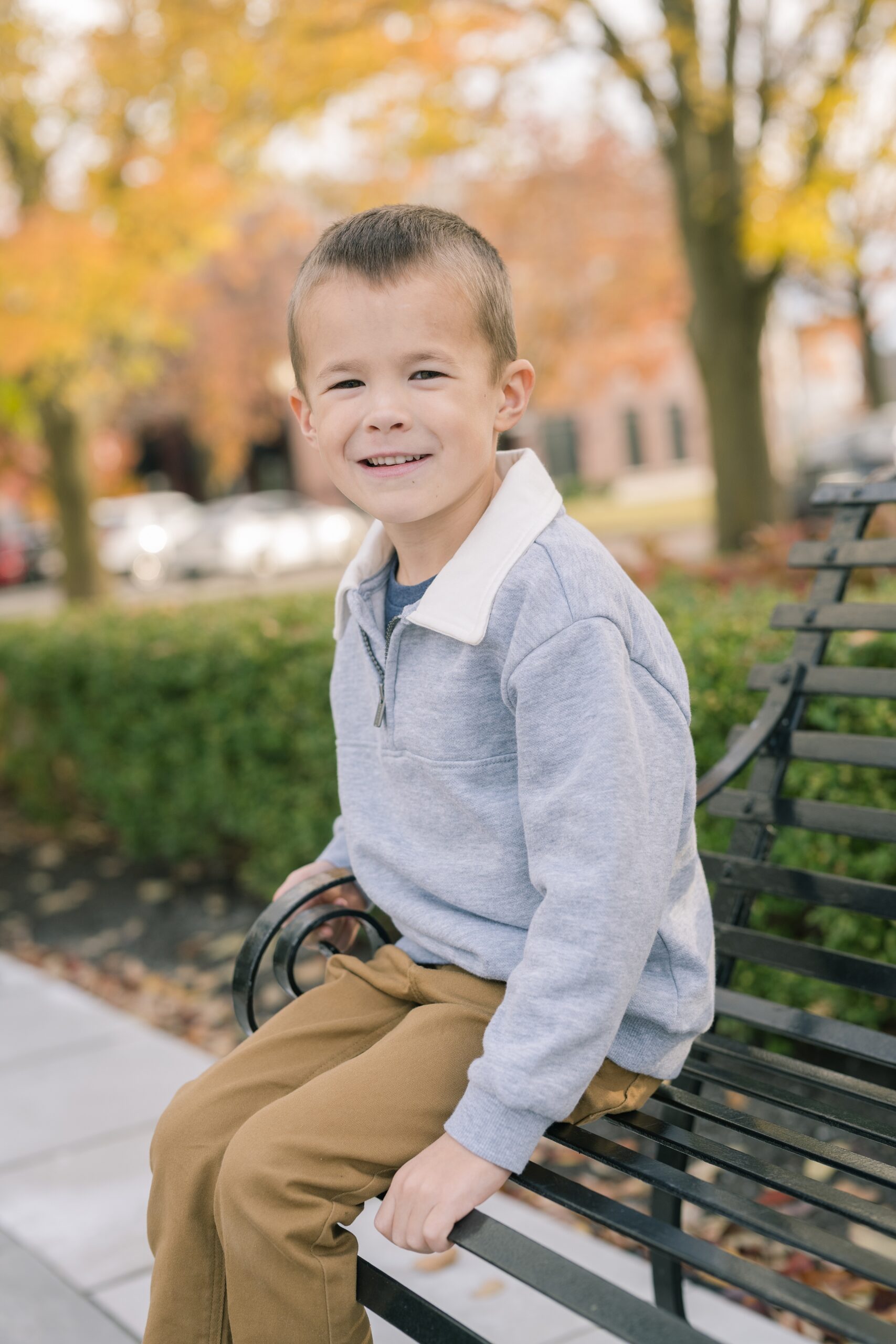 I am so excited to share some favorites from this charming fall portrait session! First, let me say how much of an honor it is when my clients refer me to their friends and family! I am beyond lucky to meet and to work with such fun and down to earth people, it is the best! Second, we had great weather for their fall session! We had scheduled their session for a few days later, however, the forecast called for less than ideal conditions, and, fortunately, Katie and her family were available. And I’m so grateful because it could not have been better! We had fall color, we had sunshine, and we had the kind of temperature where you could be comfortable in light layers or a sweater, which is so great for little ones! Enough about the weather, let’s get to the good stuff! Meet Katie and Kevin and their adorable kiddos, Owen (6), Emmett (4), and Ceci (11 months)! As the late afternoon sun illuminated our time, I simply enjoyed their sweet interactions as a family of 5. Ceci is blessed with two handsome big brothers who are completely smitten with her! And just wait until you see her tiny little golden slippers! She is so expressive, and I couldn’t adore her or her whole family more! It was so refreshing to see their sweet sibling dynamic, and they know how to make her laugh and smile! This dream session had the perfect balance—sweet and silly, calm and spirit. With their vivacious personalities and tender moments, we captured so much in such a short time, and I’m excited to share a little peek into that evening with you!