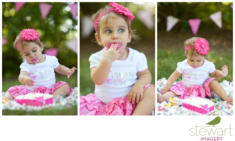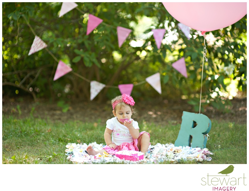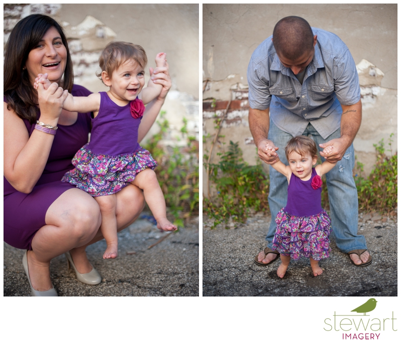 We had an absolutely delightful summer morning for this adorable baby girl and her proud parents’ family session! Meet sweet Raegan, who just celebrated her first birthday a few weeks ago! It was the perfect day to celebrate this important milestone! Joe and Stacy are beyond smitten with their beautiful daughter, and you’ll certainly see why as you scroll through some favorites below! Our session was flooded with soft light, colorful locations, a giant pink balloon, a hot pink cake, the sweetest family, and some of the most beautiful blue eyes ever! Friends and family can view their entire online gallery here. Without further adieu, please welcome this gorgeous family to the blog!