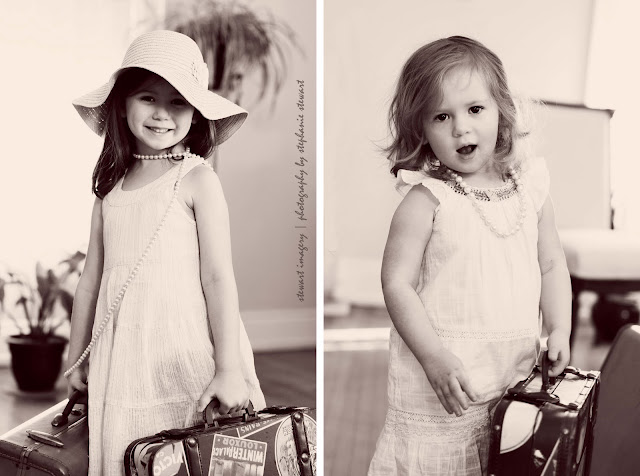 I was beyond excited when Lindsay contacted me to do some special portraits of her beautiful daughters! After all, I was thrilled to work with them last fall and the previous year with their tremendously fun family. I love smiling, happy families, and this one is definitely one of them! As I was saying, Lindsay asked me to capture these two sisters to celebrate their birthdays. Avery is now 5 years old, and her younger sis, Piper, is two. Avery is enthusiastic, energetic, and loves to have fun. Piper is pensive, curious, and loves to explore her surroundings. They are both sweet, adorable, and know how to work it out for the camera! I just love seeing how they’ve grown since our last session, and I am incredibly excited to share the following images from their session (check out their Sneak Peek too!). Lindsay asked for something fun and creative, and I’ve been wanting to do this more stylized, vintage, dress-up theme for quite some time, and she loved the idea. So, we made it happen! Without further adieu, please welcome Avery and Piper!